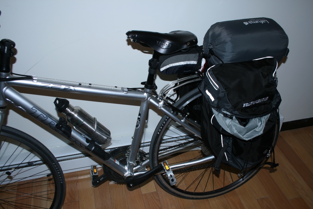 My camping gear consists primarily of items inherited from a previous generation. My usual sleeping bag is a time-honored Coleman design featuring a drab green exterior and a comfy flannel lining with a red and tan print of birds and wildlife that I think is intended to evoke memories of an autumn hunt. It must be filled with something close to raw cotton stock and it has provided good service in both warm and cool weather adventures. The problem is that, even after years of practice, the best packing job still results in an article with the volume of a bushel of apples and the weight of, well, a bushel of cotton. Let’s say greater than five pounds and leave it at that. It just isn’t designed for strapping to a dainty bike rack and transporting it any distance under human power.