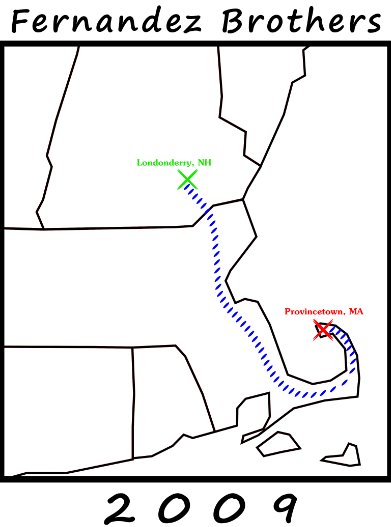 Our original course was dictated by expected living arrangements. As these have changed, so have the course plans. Henceforth, the goal will be Londonderry, NH to Provincetown, MA, a jaunt that Google paces out at 316miles round-trip. While this cuts a few miles off the overall achievment, these can easily be replaced with auxilliary excursions as suits our mood. Advantages include anticipated smoother riding along the MA east coast, the option to ride through Boston, and the chance to prove that Provincetown is only a ride away from my front door.